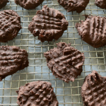 • Drop spoonfuls of the dough onto the prepared baking sheet using two teaspoons. Flatten each cookie into a crisscross pattern with a damp fork.